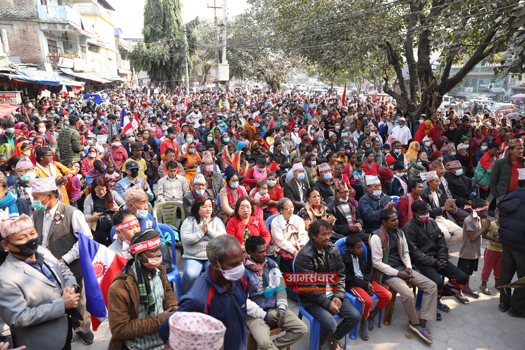 र्यालीपछि गणतन्त्रचोकमा सभा गरिएको थियो । संघीय लिम्बुवान मञ्च, नेपालका अध्यक्ष कुमार लिङ्देन मिराकका अनुसार दमकमा बन्न लागेको अर्बौको क्लिन पार्कले यहाँका आदिवासी जनजातिको जल, जमिन र जंगलमाथिको आईएलओ १६९ले दिएको अग्राधिकारलाई वेवास्ता गरिएको छ । उनले भने– त्यस क्षेत्रमा भएका हजारौं हेक्टर जमिनलाई न्यूनतम् मूल्य कायम गरी वर्तमान सरकारको निर्देशनमा जनतालाई सुकुम्बासी बनाउने र केही व्यक्ति रातारात अर्बपति हुने षड्यन्त्रबिरुद्ध मञ्चले बिरोधसभा आयोजना गरेको हो । ‘मुआब्जाको नाममा पार्क बनाउन सोझा–साझा स्थानीय जनतामाथि ठगी भएको छ, सीमित व्यक्ति मोजमा छन्, त्यसकारण चीनको लगानी खेर जान्छ’– लिम्बुवान नेताहरुको भनाइ थियो । आफूहरु विकास विरोधी नभए पनि पीडितले उचित क्षतिपूर्ति नपाए त्यस सम्वन्धी काम हुन नदिने लिम्बुवान नेताहरुले बताए ।