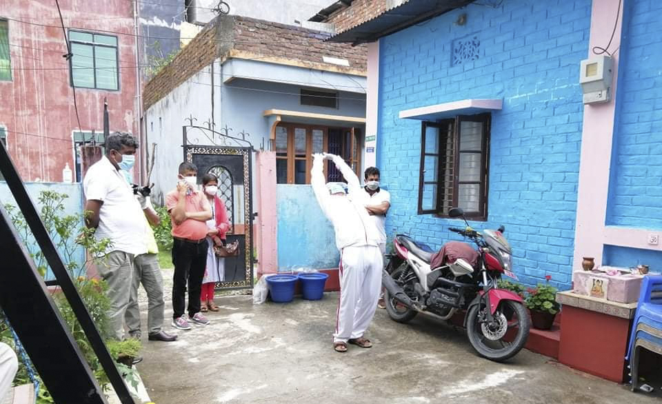 यसैवीच पत्रकार महासंघ प्रदेश नं.१को पहल तथा झापा शाखाको समन्वयमा बुधवार मेची अञ्चल आयुर्वेद औषधालय (अस्पताल) इलामको टोलीले संक्रमित १० पत्रकारको घरमा आयुर्वेद औषधि वितरण गर्नुका साथै श्वासप्रश्वासमा लाभ पुग्ने विभिन्न योग विधि समेत सिकाएको छ ।