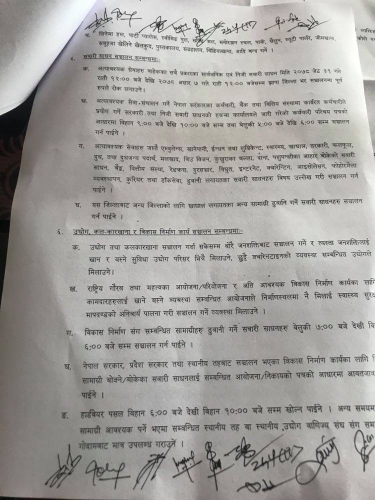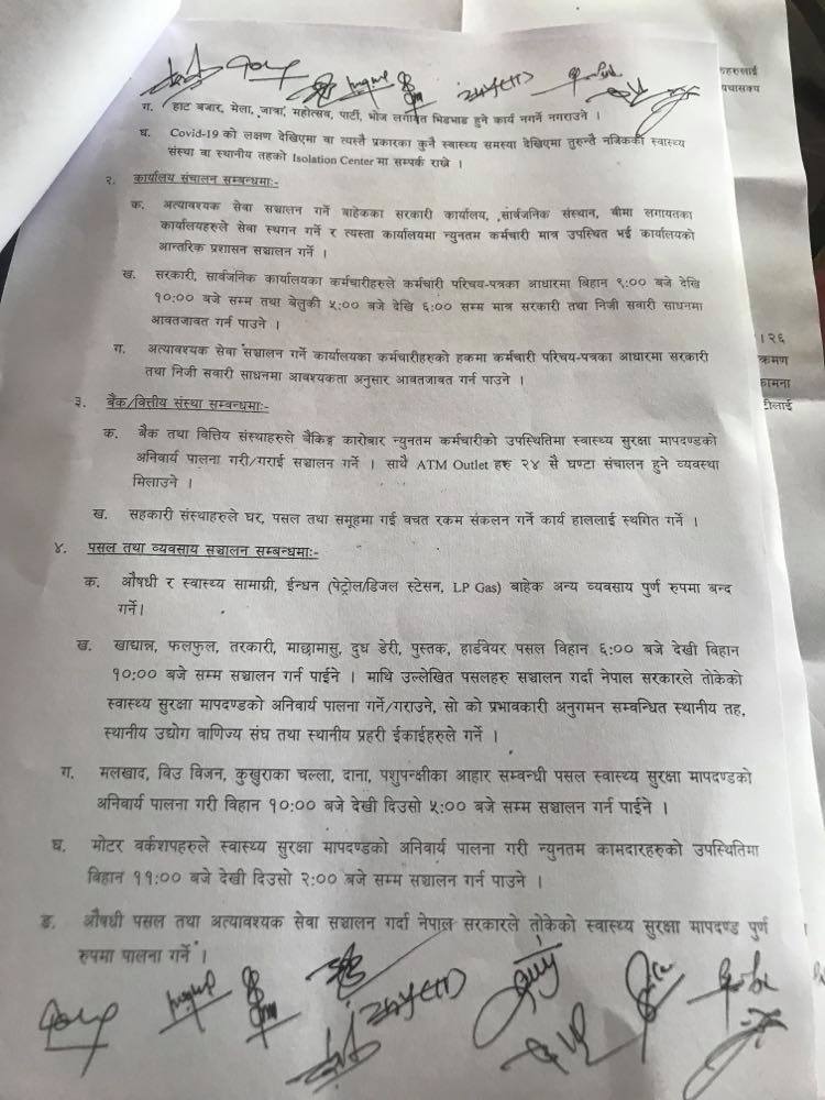 डीसीसीएमसीले लकडाउनलाई केही खुकुलो पार्दै जाने गरि पुरानो निर्णयलाई परिमार्जित गर्दै असार १ गते बाट खाद्ययन्न,फलफूल,तरकारी, माछा मासु, दुध डेरी, पुस्तक, र निर्माण सामग्रीका पसलहरु बिहान ६ बजे देखि १० बजे सम्म खुल्ला गर्ने निर्णय भएको प्रजिअ तिमल्सिनाले बताए । अन्य बस्तु तथा सेवाहरु भने पूर्व निर्णय अनुसारनै कार्यनयन गर्नुपर्ने भएको छ ।
