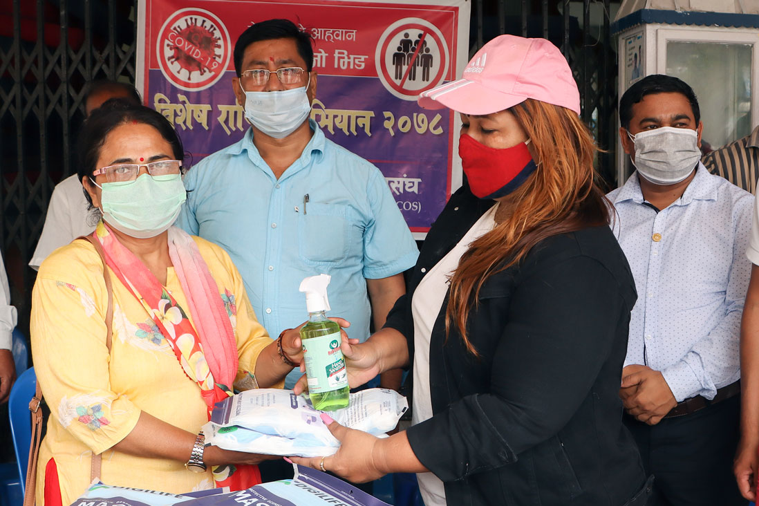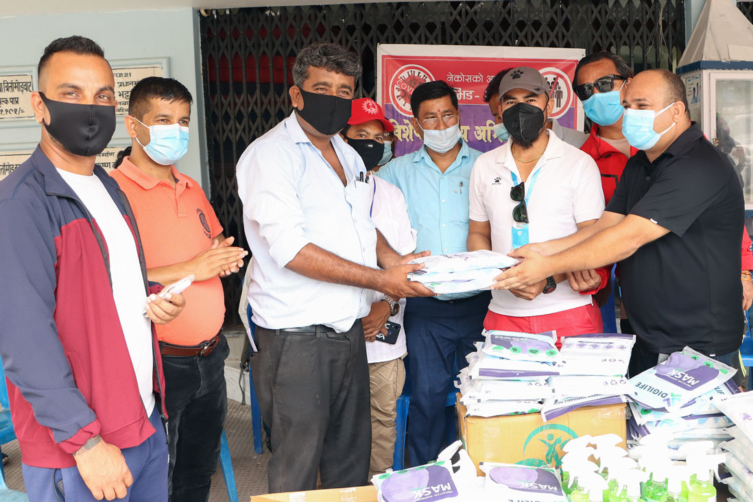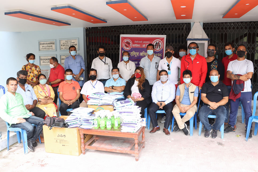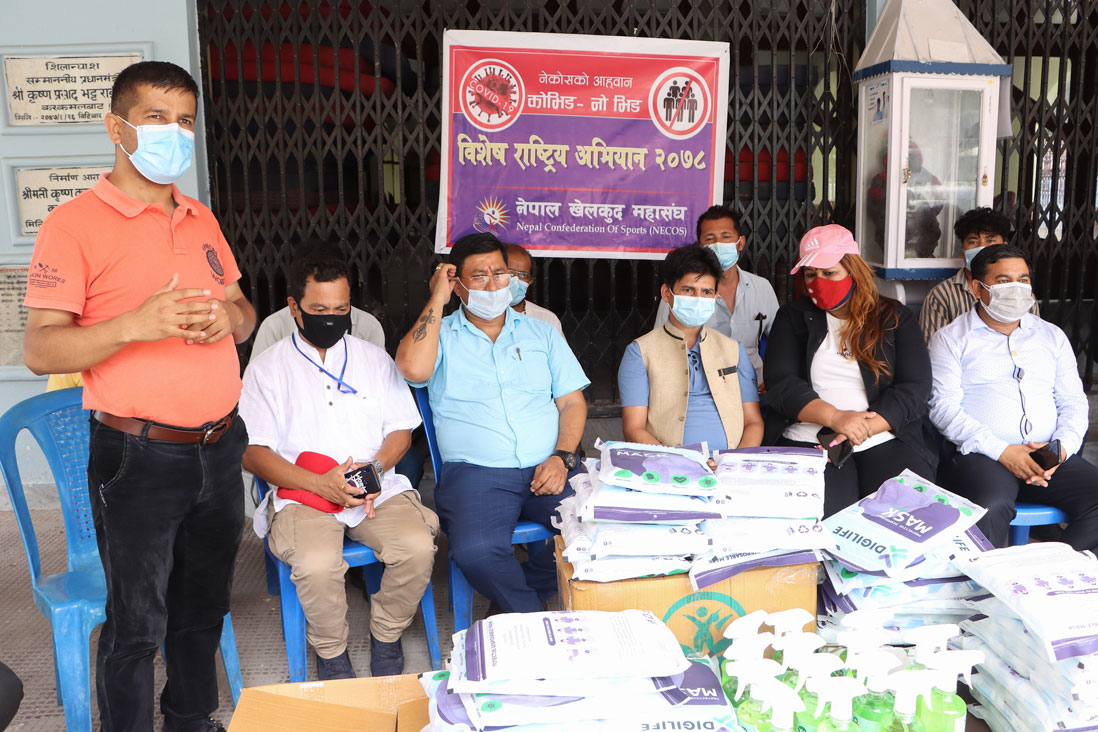 खेलकुद महासंघका सचिव सन्तोष बान्तवा, बासु नेपाल, स्थायी कमिटी सदस्य सन्तोषी श्रेष्ठ, उमेश खतिवडाले पत्रकार महासंघ झापाका अध्यक्ष एकराज गिरी, उपाध्यक्ष केशव भट्टराई, सुशीला संग्रौलालाई उक्त स्वास्थ्य सामग्री हस्तान्तरण गरेका थिए ।