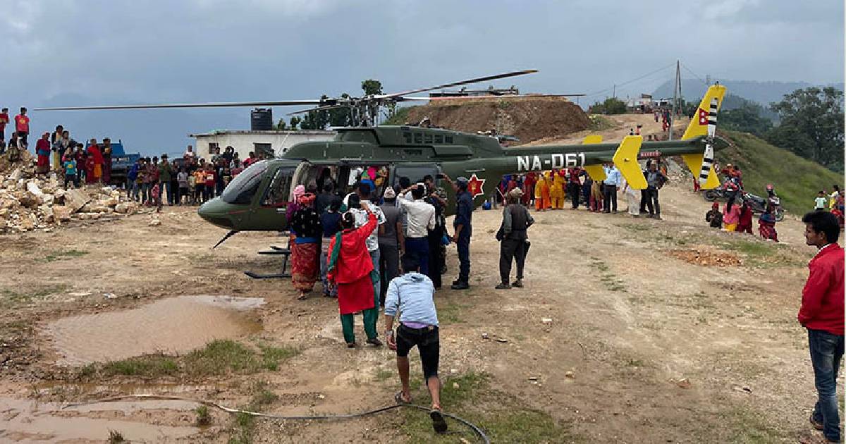 दैलेख : दैलेखको भैरवी गाउँपालिका–५ बाट एक गर्भवतीको नेपाली सेनाको हेलिकप्टरको प्रयोग गरी उद्धार गरिएको छ। ९ महिनाको गर्भ रहेकी गाउँपालिका–५ की सुनिता विष्टको सेनाको हेलिकप्टरबाट आज उद्धार गरिएको हो।