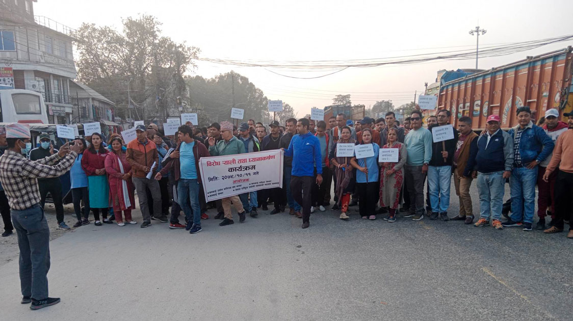 कनकाई । ‘काठमाडौंको नयाँ बानेश्वरमा मंगलबार आफैमाथि आगो लगाए आत्मदाह गरेका इलामका व्यवसायी प्रेमप्रसाद आचार्यले मृत्यु अघि सरकारलाई दिएको सुझाव र उनले उठाएको मागहरू समग्र व्यवसायिहरु को प्रतिनिधि माग हो र सरकारले तत्काल ति मागहरू पुरा गर्नु पर्छ, पुरा नगरे अरु पनि व्यवसायी हरूले पनि बाध्य भएर आत्मदाह गर्नु पर्ने अवस्था आएको’ भन्दै झापाको कनकाई नगरपालिका सुरुंगा बजारमा व्यवसायीहरूले सरकारको ध्यानाकर्षण गराउन प्रर्दशनी र कोणसभा गरेका छन्