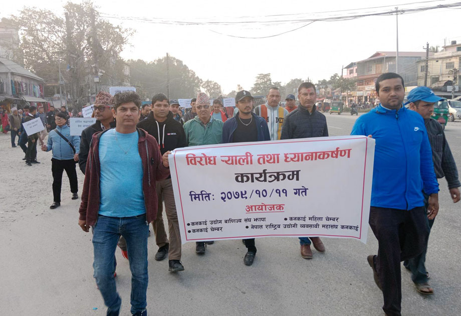 कनकाई उद्योग वाणिज्य संघका अध्यक्ष तुलसी विमलीको अध्यक्षतामा आयोजित कार्यक्रममा महिला चेम्बर कनकाईकी अध्यक्ष खिनमाया खतिवडा, कनकाई उद्योग वाणिज्य संघका संस्थापक अध्यक्ष युवराज संग्रौला, नेपाल उद्योग वाणिज्य महासंघ प्रदेश १ सदस्य एवं कनकाई उद्योग वाणिज्य संघका पूर्व अध्यक्ष कुमारमणि पोखरेललगायतले सरकारले तत्काल व्यवसायीहरूको पिर मर्का बुझ्नु पर्ने माग रोखेका छन् ।