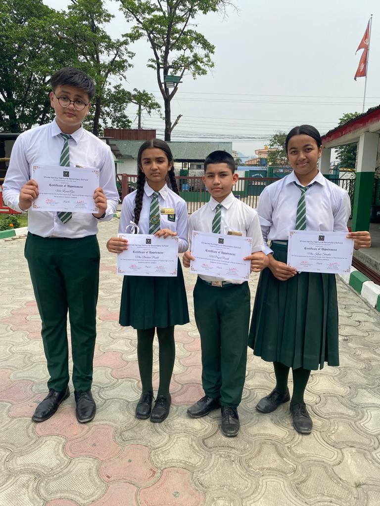 जम्म मत ३३८ मत खसेको र निर्बाचनबाट स्कुल क्यापटेनमा स्मृती दाहाल (१८४ मत) र भाइस क्याप्टेन संस्कृती पौडेल ( १४४ मत) प्राप्त गरि चुनिए । यस्तै ग्रिन हाउस तर्फ क्याप्टेन प्राप्ति सिवाकोटी र भाइस क्याप्टेन रोनिस गिरी, रेड हाउसमा अनुसा सिवाकोटी र खुसी श्रेष्ठ , एल्लो हाउसमा लक्षित चिमरिया र बैभवी पौडेल , ब्लु हाउसमा एरिना राई र संस्कृती पौडेल चुनिए ।