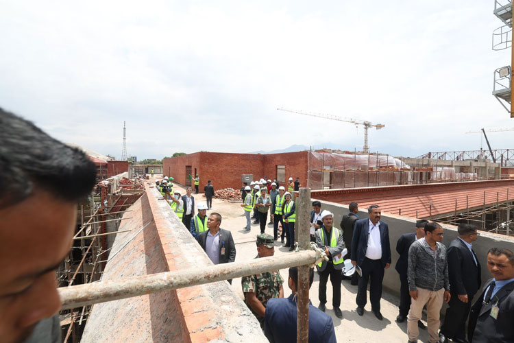 निर्माणाधीन भवनको सोमबार प्रधानमन्त्री दाहाल, सहरी विकास मन्त्री सीता गुरूङ लगायतले अवलोकन गरेका हुन्।
