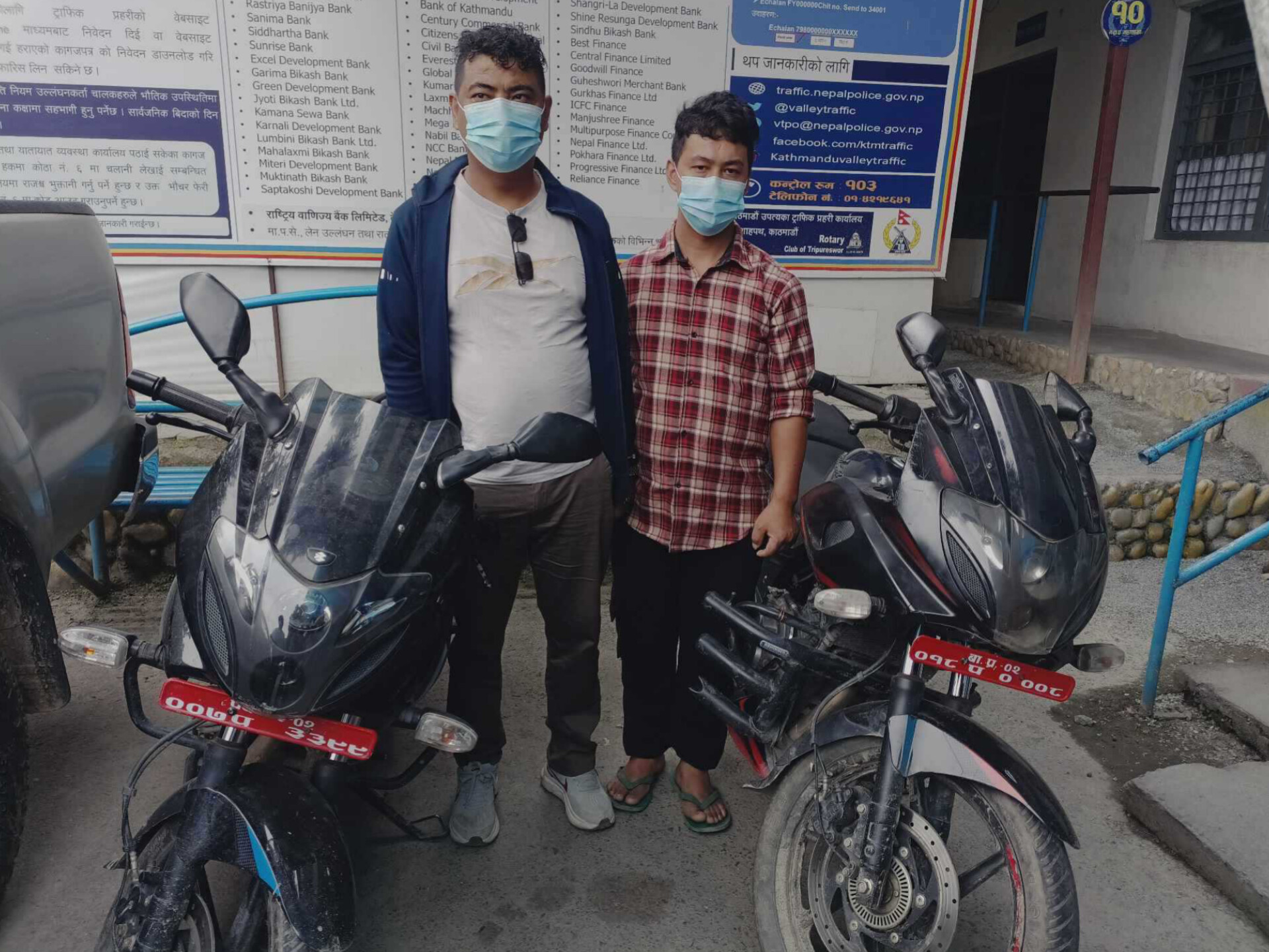 काठमाडौँ – मोटरसाइकल चोरीमा संलग्न दुई जनालाई काठमाडौँ महानगरपालिका १६ बालाजु स्थित चप्पलकारखानाबाट  ट्राफिक प्रहरीले नियन्त्रणमा लिएको छ । नुवाकोटको सुर्यगढी गाउँपालिका २ घर भइ हाल काठमाडौँको लोलाङ बस्ने ४५ वर्षीय दिपेन्द्र तामाङ र नुवाकोटकै लिखु गाउँपालिका २ घर भइ काठमाडौँको बाइपास बस्ने २८ वर्षीय सन्तोष घलेलाई ट्राफिक प्रहरीले नियन्त्रणमा लिएको हो । गत जेठ २ गते काठमाडौँको मनमैजुबाट बागमती प्रदेश ०२-०२७ प ७५ ८० नम्बरको र गत जेठ २९ गते काठमाडौँकै टोखा नगरपालिका १ झोरबाट बागमती प्रदेश ०२-०२२ प ४४ ५४ नम्बरको २ सय २० सि.सि.को पल्सर मोटरसाइकल हराएको भनि काठमाडौँ उपत्यका ट्राफिक प्रहरी कार्यालयमा  निवेदन परेको थियो । उक्त मोटरसाइकलहरु खोज्दै जाने क्रममा वास्तविक नम्बर परिवर्तन गरि प्रदेश ३-०२-००७ प ३३ ९९ नम्बर राखी चलाइरहेको अवस्थामा दिपेन्द्र तामाङलाई र बागमती प्रदेश ०२-०१८ प ०००८ नम्बर राखि चलाइरहेको अवस्थामा सन्तोष घलेलाई काठमाडौँ उपत्यका ट्राफिक प्रहरी कार्यालयमा रहेको पिडित सहायता ‍ईकाइबाट खटिएको टोलीले मोटरसाइकल सहित फेला पारी आज दिउँसो नियन्त्रणमा लिएको हो । नियन्त्रणमा आएका तामाङलाई प्रहरी वृत्त बालाजु र घलेलाई प्रहरी वृत्त महाराजगंजमा  थप अनुसन्धान तथा कारबाहीका लागी पठाईएको छ ।