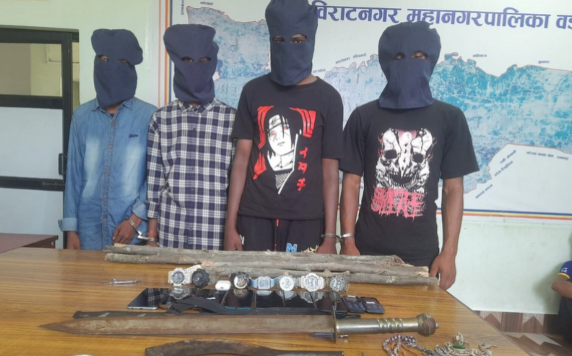 विराटनगर – ग्याङ फाइट गर्न भन्दै हिँडेका युवाको समूहलाई मोरङ प्रहरीले पक्राउ गरेको छ। विराटनगर– ९ घोघापुल चोकबाट उनीहरुलाई  पक्राउ गरेको प्रहरीले जनाएको छ।
