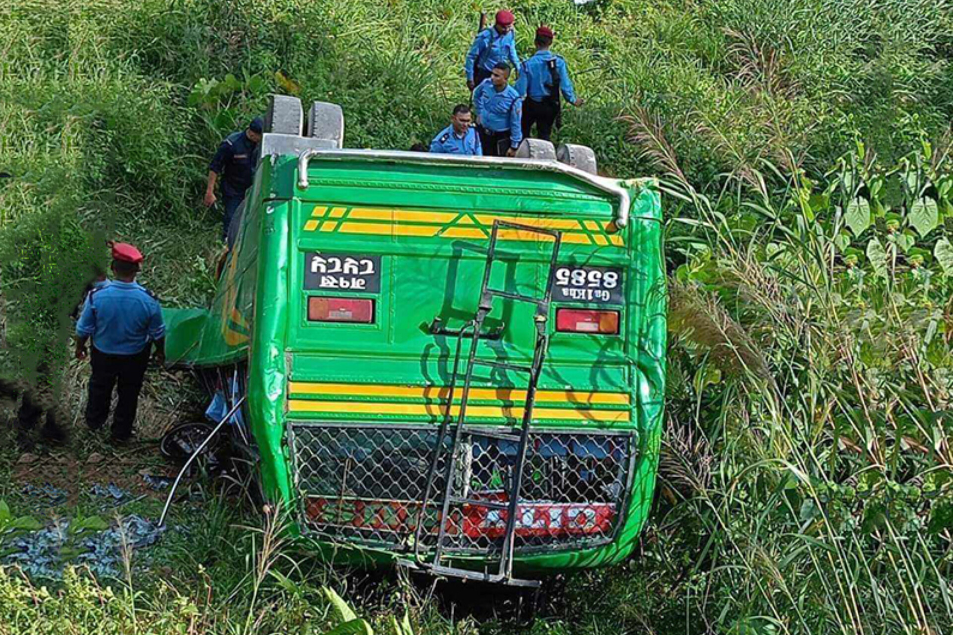 बस घुम्तीमा अचानक ब्याक हुँदा दुर्घटनामा परेको हुन सक्ने प्रारम्भिक अनुमान छ।