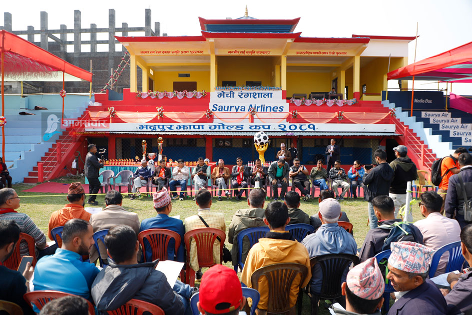 भद्रपुर । जिल्लाको प्रतिष्ठित फुटबल प्रतियोगिता दोस्रो भद्रपुर झापा गोल्डकप यही फागुन ७ गतेदेखि १६ गतेसम्म सञ्चालन हुने भएको छ। ऐतिहासिक मेची रंगशालामा आयोजना हुन लागेको प्रतियोगिताको सम्पूर्ण तयारी पूरा भएको आयोजक समितिले जनाएको छ।