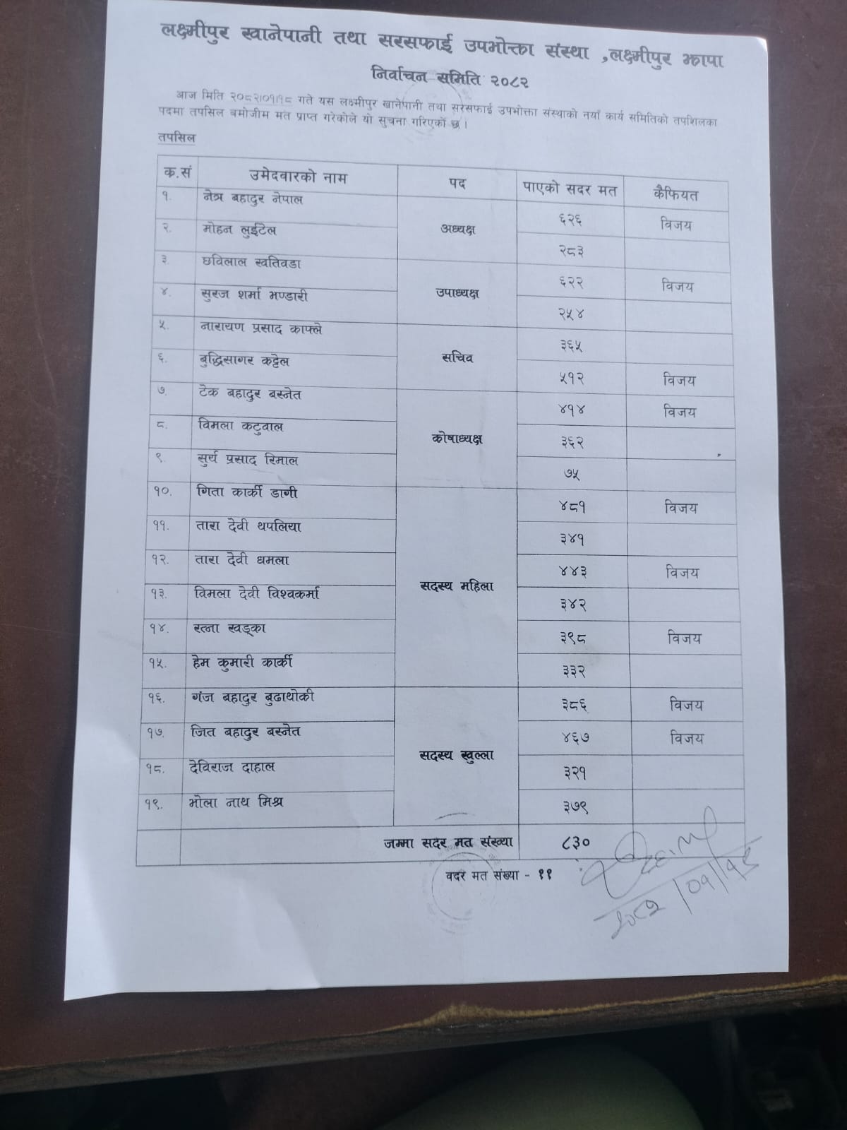 लक्ष्मीपुर । अर्जुनधारा र कनकाई नगरपालिकालाई सेवा दिँदै आएको लक्ष्मीपुर खानेपानी तथा सरसफाइ उपभोक्ता समितिको निर्वाचनमा संयुक्त समावेशी समूहले बहुमत प्राप्त गरेको छ।