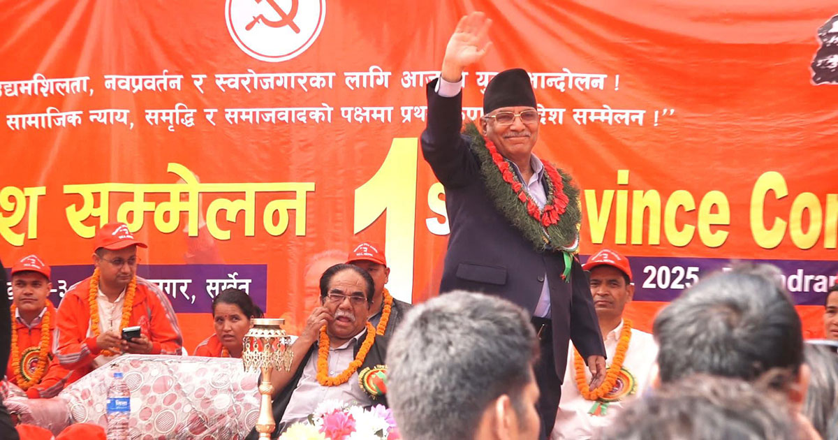 कर्णाली प्रदेशको राजधानी वीरेन्द्रनगर, सुर्खेतमा सोमबारबाट सुरु भएको पार्टीको भातृ संगठन वाइसीएल ९योङ कम्युनिस्ट लिग० कर्णाली प्रदेश समितिको प्रथम सम्मेलनलाई सम्बोधन गर्दै अध्यक्ष प्रचण्डले माओवादी केन्द्र समाजवादी अभियानमा रहेको बताउँदै सो अभियानलाई अझ तीव्र बनाउने घोषणा गरे ।