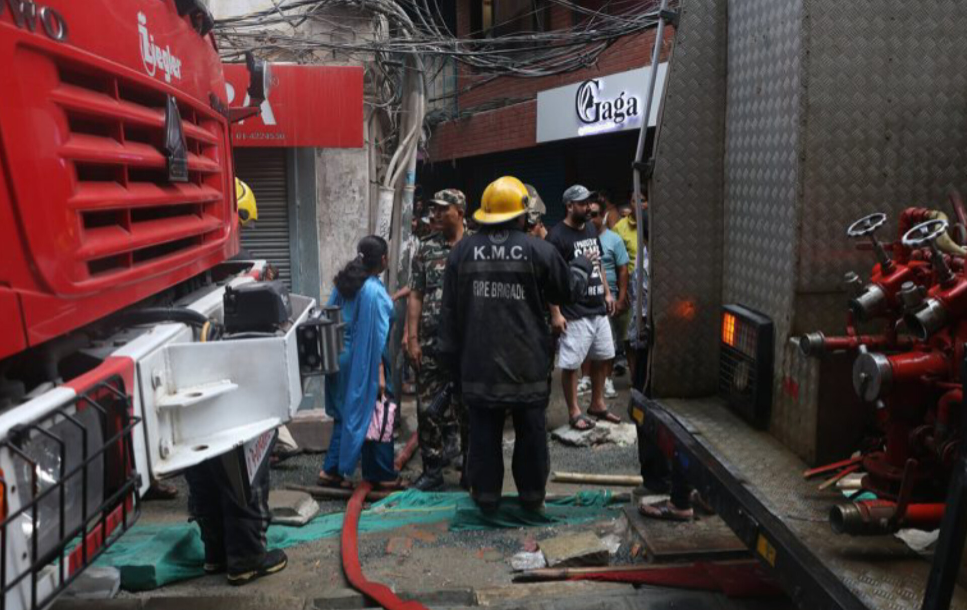 सुरज आर्केड पछाडि पर्ने मखन गल्लीमा रहेको दयाराम श्रेष्ठको ४ तले घरबाट आगलागी सुरू भएको थियो । माटो र काठले बनेको कच्ची घरको तेस्रो तल्लामा ग्याँस लिक भई आगलागी सुरु भएको प्रहरीले जनाएको छ ।