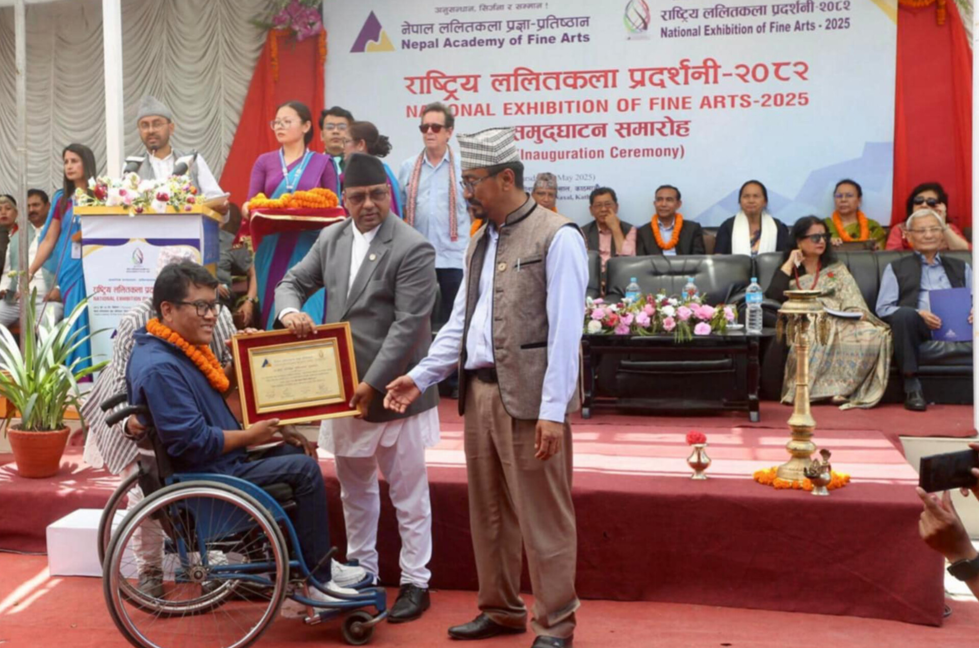 त्यस्तै, प्रादेशिक ललितकला पुरस्कार समसामयिक चित्रकला विधातर्फ कोसीबाट महेन्द्र राई, मधेसबाट युगेश घिमिरे, बाग्मतीबाट सुन्दर लामा, गण्डकीबाट मनोज तामाङ, लुम्बिनीबाट आकाश बुढा मगर, कर्णालीबाट थुक्तेन लामा, सुदूरपश्चिमबाट दिपक आउजी, समसामयिक मूर्तिकलातर्फ कोसीबाट सुमन राई, मधेसबाट योगेन्द्र पण्डित कुम्हार, बागमतीबाट करुणा श्रेष्ठ, गण्डकीबाट रिहाना परियार, लुम्बिनीबाट बुद्ध थारू, कर्णालीबाट टोपेन्द्र डाँगी, सुदूरपश्चिमबाट महेन्द्र पुन मगर, परम्परागत चित्रकला विधातर्फ कोसीबाट दावा साङ्मु शेर्पा, मधेसबाट सोनम सिंह भ्लोन, बागमतीबाट रोशन ख्याजु, कर्णालीबाट सोनाम डोल्मा तामाङ, परम्परागत मूर्तिकलातर्फ कोसीबाट प्रतिक मञ्जुल बराइली, बागमतीबाट महेश शिल्पकार, शिल्प–हस्तकलातर्फ कोसीबाट शिव छाङ्छा (शिवकुमार राई), मधेसबाट सन्तोष यादव, बागमतीबाट सरोज सुनार, गण्डकीबाट विष्णु मुक्तान लगायतको उपस्थित थियो ।
