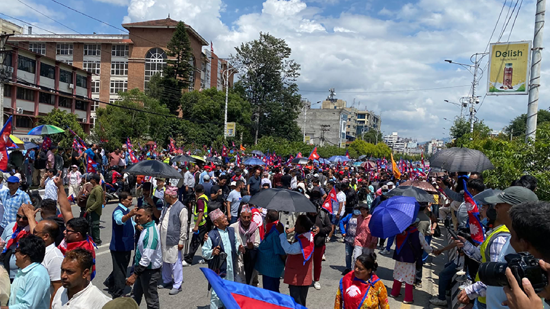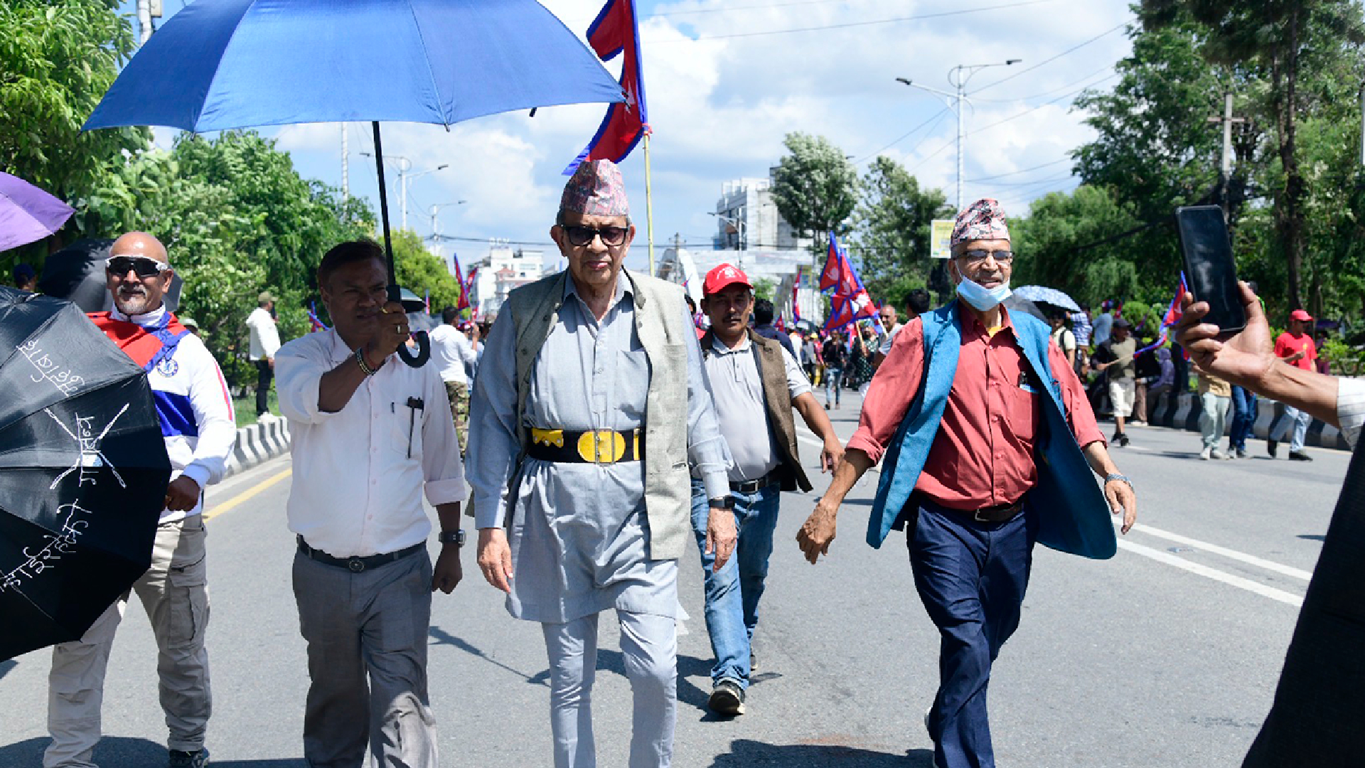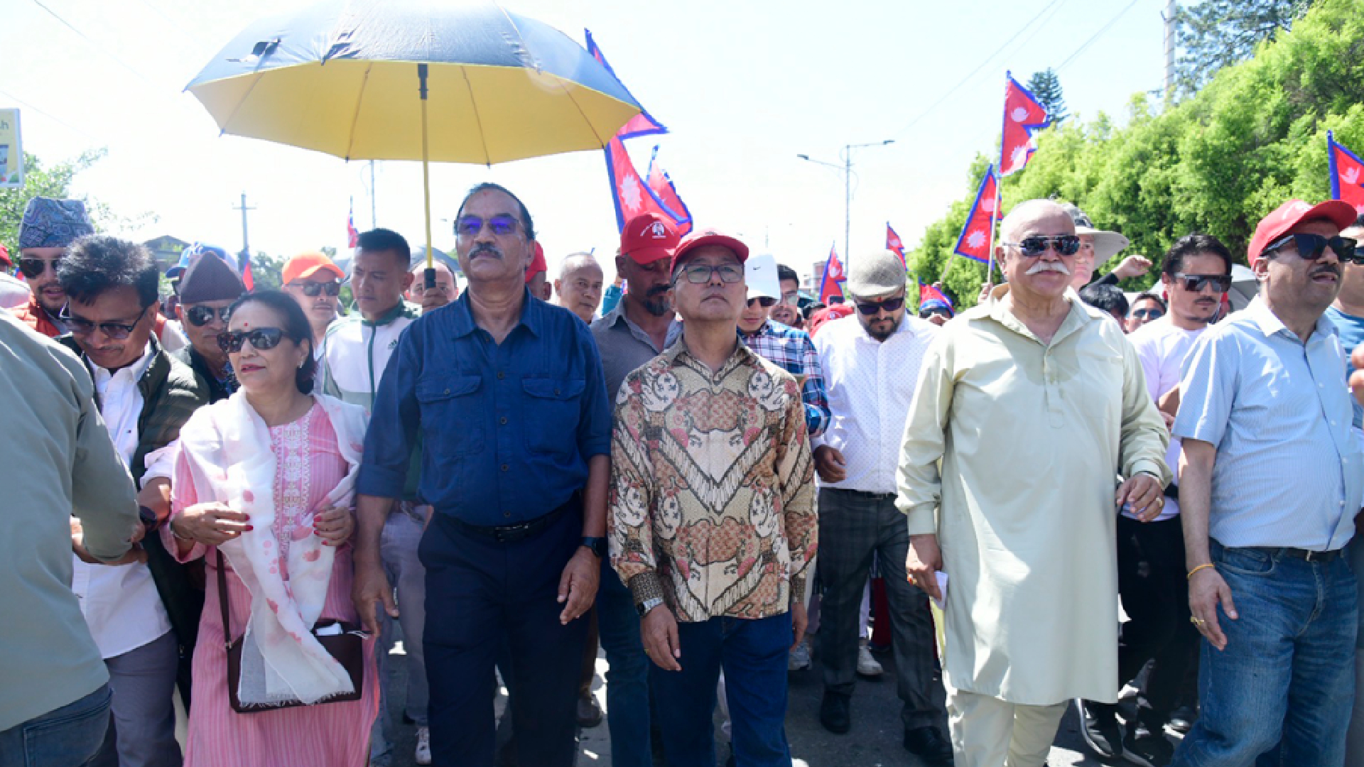 शुक्रबारको प्रदर्शनमा राप्रपा अध्यक्ष राजेन्द्र लिङ्देन, राप्रपा नेपालका अध्यक्ष कमल थापा लगायत नेताहरू पनि छाता ओढेर सहभागी भएका छन्।