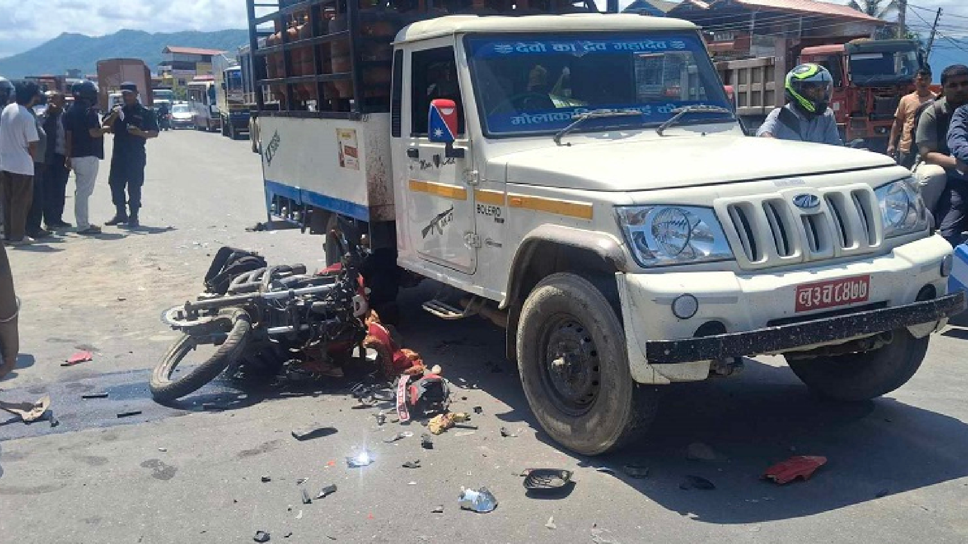 गैँडाकोट नगरपालिका–२ भृकुटीचोकस्थित पूर्व–पश्चिम राजमागमा कांग्रेस चोकबाट चितवन तर्फ जाँदै गरेको लु ३ च ८४७७ नम्बरको बोलेरोलाई सोही दिशातर्फ जाँदै गरेको ना ६३ प २२६१ नम्बरको मोटर साइकलले ओभरट्याक गर्ने क्रममा विपरित दिसामा गुडिरहेको ना १ ज ४३४२ नम्बरको म्याजिक भ्यानमा ठोक्किँएर दुर्घटना भएको प्रहरीको भनाइ छ ।
