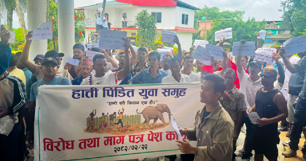 हात्तीपीडितको नगरमा प्रदर्शन : “हात्ती चराउन पाइँदैन, आँशु बेच्न पाइँदैन“