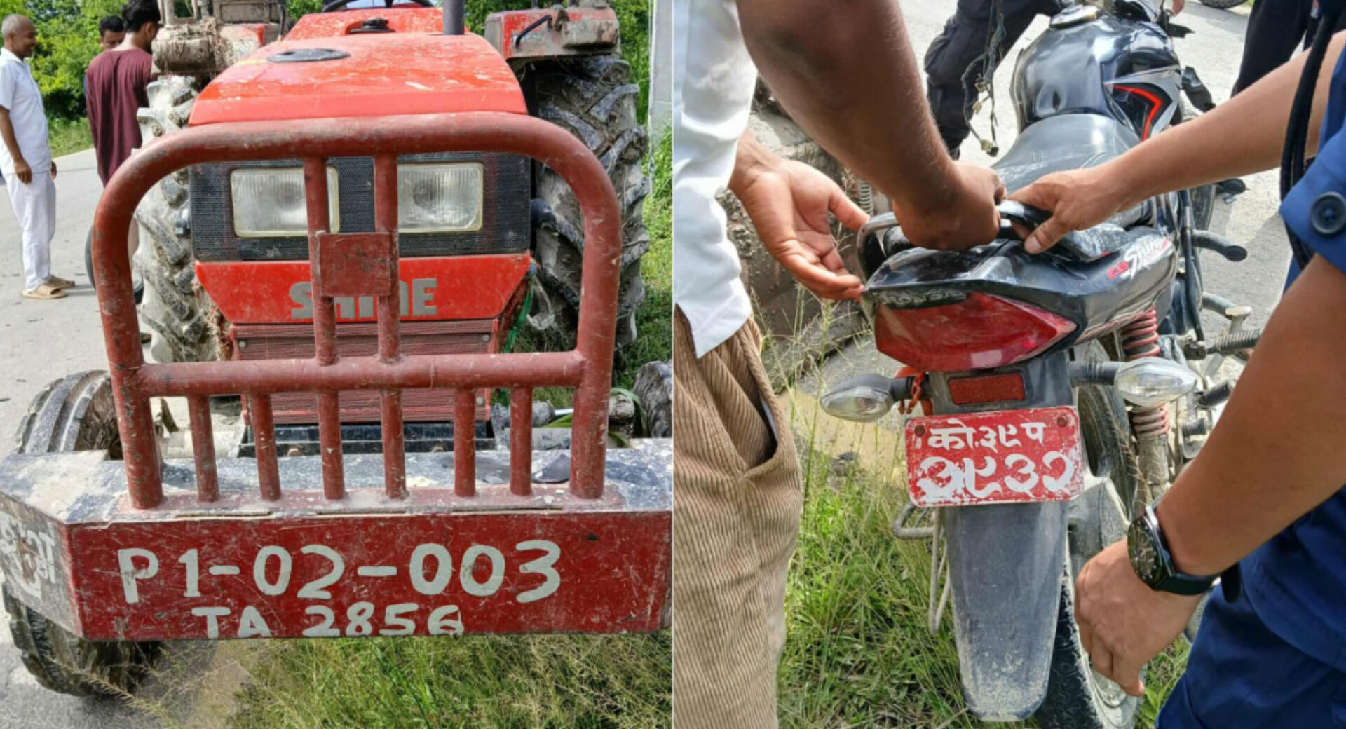 मोटरसाइकल र ट्याक्टरलाई प्रहरीले नियन्त्रणमा लिएको छ । ट्याक्टर चालक रंगेली–८ का अन्दाजी ३० वर्षीय जीवन ताजपुरिया फरार रहेकाले खोजी तीव्र पारिएको प्रहरीले जनाएको छ । इलाका प्रहरी कार्यालय रंगेलीका इन्स्पेक्टर नरेन्द्रकुमार बोगटी नेतृत्वको टोलीले घटनाको थप अनुसन्धान गरिरहेको छ ।