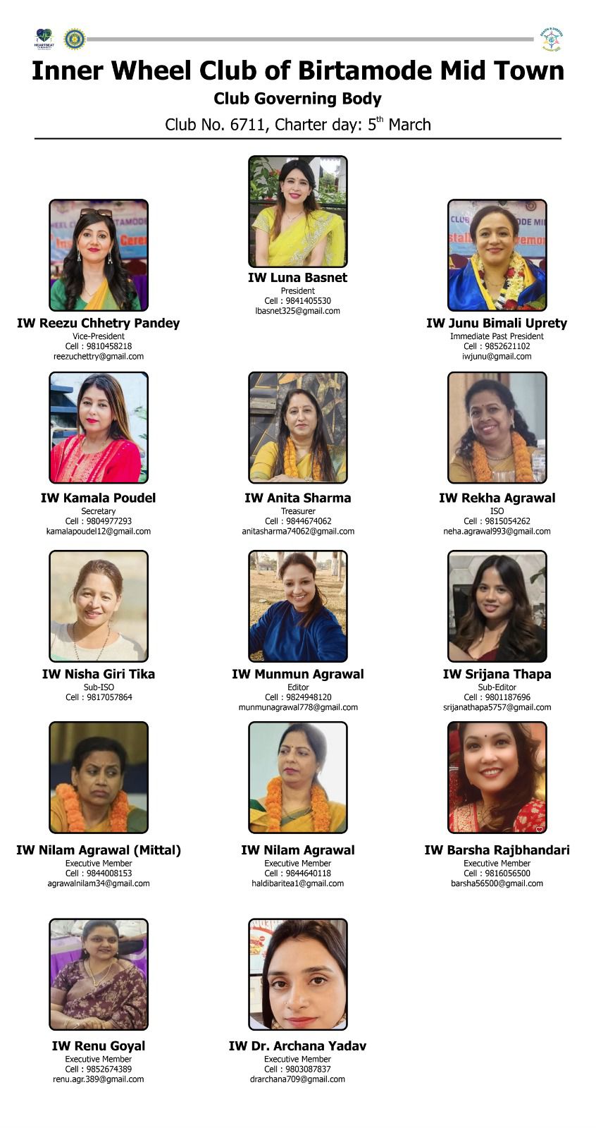 सदस्यहरू : निलम अग्रवाल मित्तल, निलम अग्रवाल, वर्षा राजभण्डारी, रेनु गोयल, डा. अर्चना यादव
