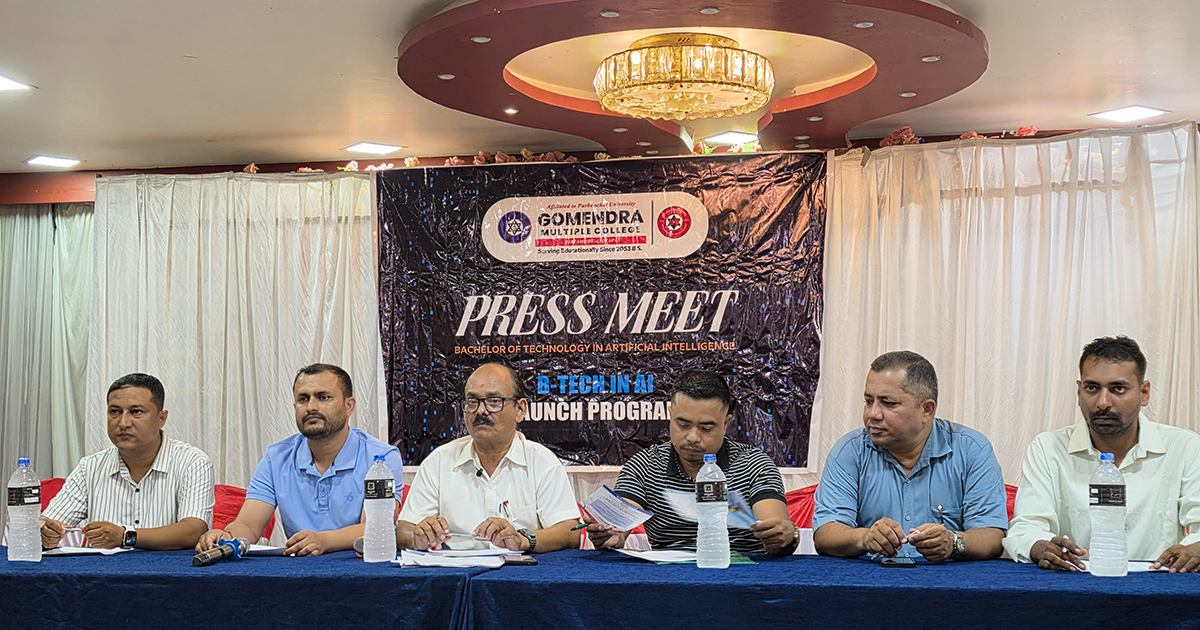 बिर्तामोड । झापाको पुरानो र प्रतिष्ठित शिक्षालय गोमेन्द्र बहुमुखी महाविद्यालयले अब कानुन (बीए एलएलबी) र प्रविधिमैत्री आर्टिफिसियल इन्टेलिजेन्स (AI) कोर्स सञ्चालन गर्ने भएको छ। शनिबार आयोजित पत्रकार सम्मेलनमार्फत कलेज प्रशासनले नयाँ अध्यापन कार्यक्रमबारे जानकारी गराएको हो।