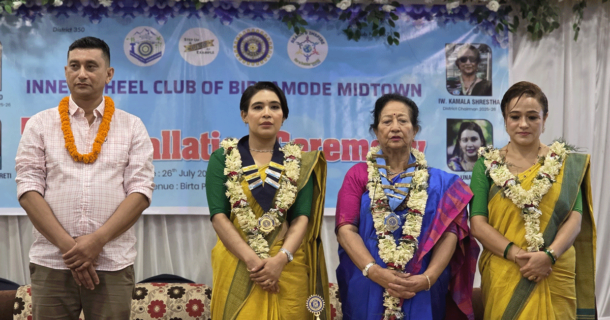बिर्तामोड । इनर ह्वील क्लब अफ बिर्तामोड मिडटाउनको सातौँ पदस्थापन कार्यक्रम शनिबार एक विशेष समारोहबीच सम्पन्न भएको छ। बिर्तामोडस्थित बिर्ता पार्टी प्यालेसमा आयोजित समारोहमा लुना बस्नेतले क्लबको अध्यक्ष पदको जिम्मेवारी ग्रहण गरेकी हुन्।