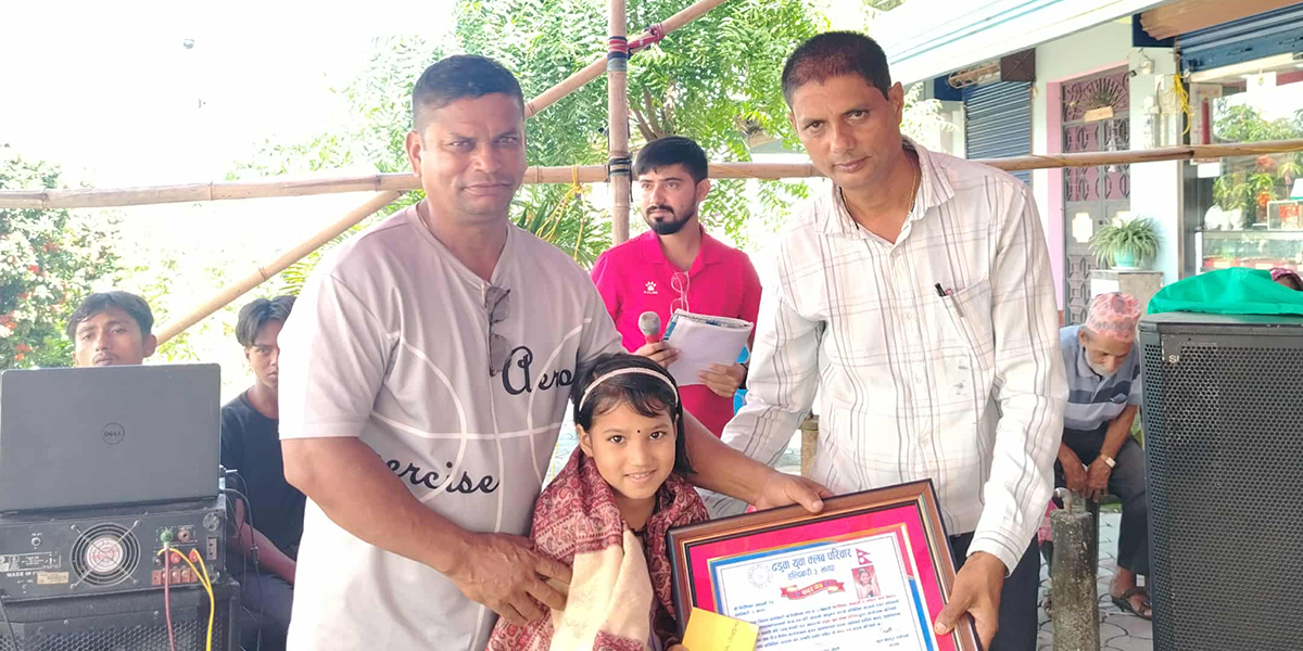 झापा । हल्दिबारी गाउँपालिका–३ मा रहेको ढडुवा युवा क्लब परिवारले आयोजना गरेको तीज विशेष बृहत सांस्कृतिक कार्यक्रममा द भ्वाइस अफ किड्स सिजन–४ सेमिफाइनलिस्ट निर्देशिका आछामीलाई नगद, दोसल्ला र कदरपत्रद्वारा सम्मान गरिएको छ।