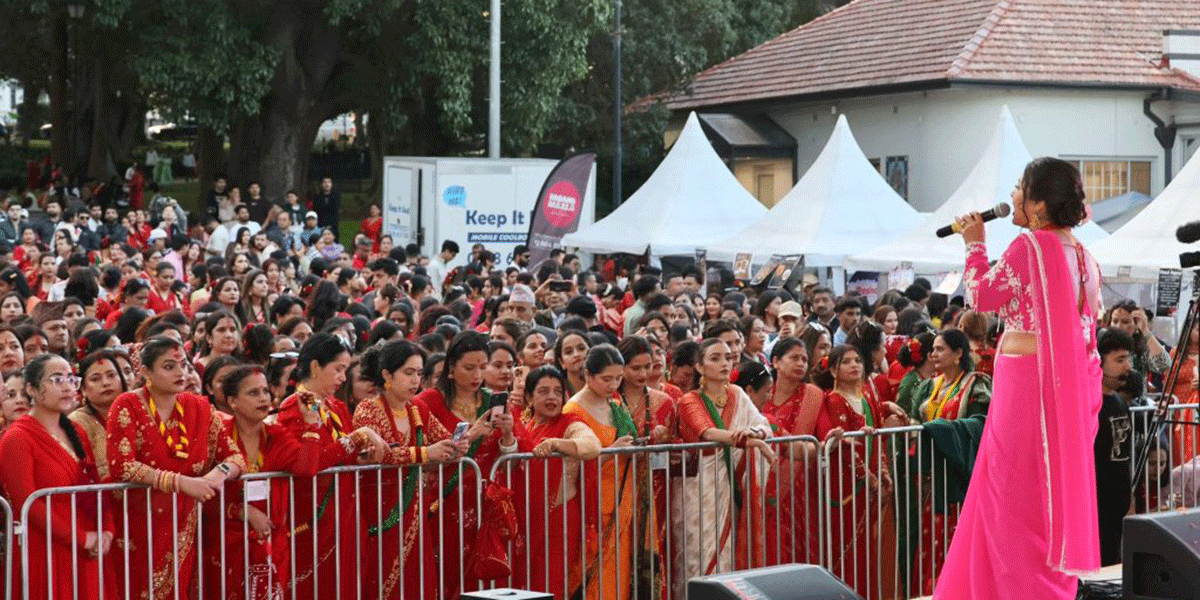 सिड्नी, (अष्ट्रेलिया) । नेपाली हिन्दू सोसाइटी अष्ट्रेलियाले आयोजना गरेको भव्य तीज महोत्सव मङ्गलबार सिड्नीस्थित बरूड पार्कमा भव्यताका साथ सम्पन्न भएको छ । अष्ट्रेलियाली बहुसांस्कृतिक समाजभित्र नेपाली संस्कृतिको महत्वलाई औपचारिक रूपमा प्रस्तुत गर्ने यो महोत्सवमा सरकारी प्रतिनिधिसहित हजारौं सहभागीजनको उत्साहपूर्ण उपस्थिति रह्यो ।
