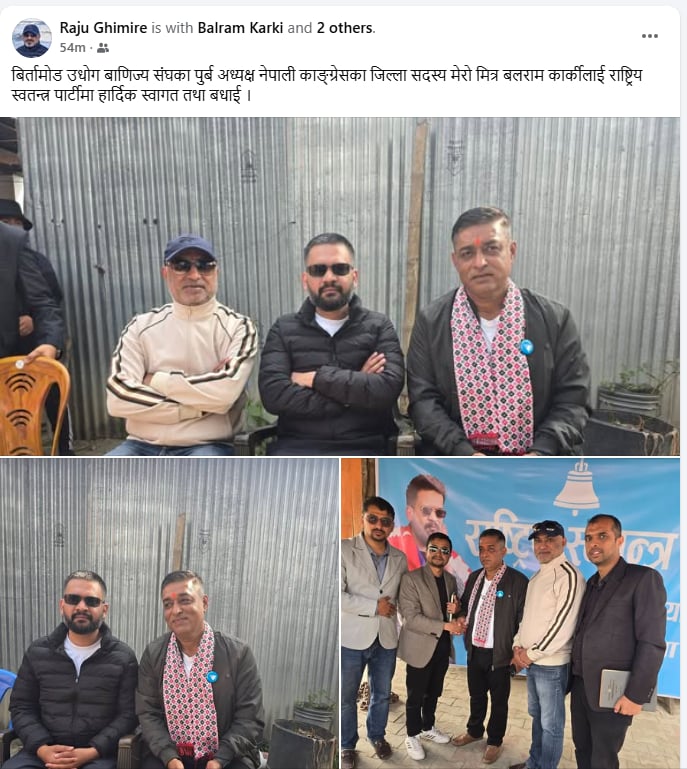 झापाको चुनावी मैदान तातेसँगै पुराना दलभित्रको असन्तुष्टि खुला रूपमा देखिन थालेको छ। यही क्रमबीच नेपाली कांग्रेसका जिल्ला सदस्य बलराम कार्कीले पार्टी परित्याग गर्दै राष्ट्रिय स्वतन्त्र पार्टी (रास्वपा) रोजेका छन्।