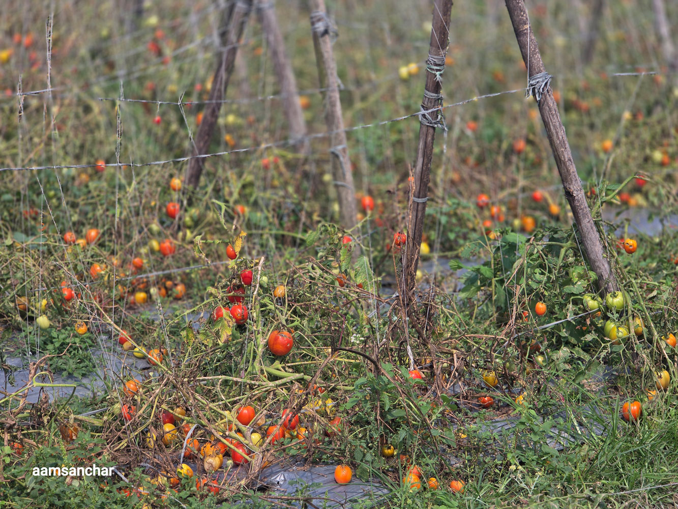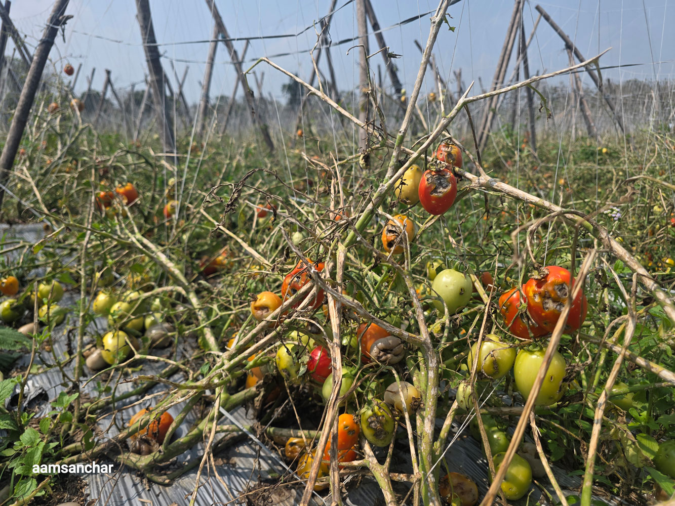 टमाटर मात्र होइन, खुर्सानी, काँक्रा, करेला, बोडी, सिम्ला खुर्सानी, सिमी र फर्सी जस्ता अन्य तरकारी बाली पनि उस्तै गरी नष्ट भएका छन्। खेतका हरिया बोटहरू अहिले सुक्खा र च्यापिएका देखिन्छन्, जसले त्यहाँको दुःखद दृश्य झल्काउँछ।