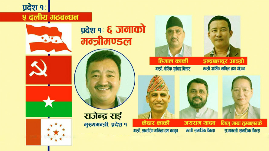विराटनगर । प्रदेश १ मुख्यमन्त्रीमा नियुक्ति भएका राजेन्द्र राईको नेतृत्वको मन्त्रीमण्डलमा थप ५ जना मन्त्री छनौट गर्ने गठबन्धन दलबीच सहमति जुटेको छ । सहमति अनुसार कांग्रेसले २, माओवादीले १, जनता समाजवादीले १ र संयुक्त लोकतान्त्रिक […]