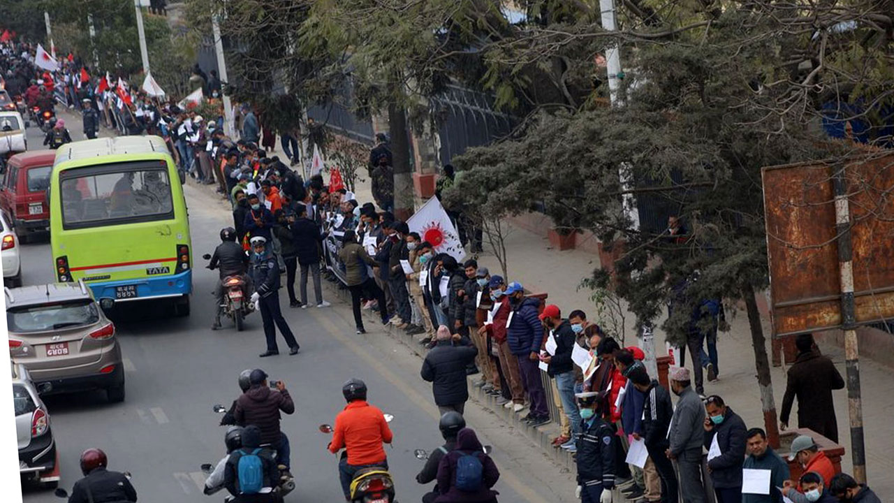 काठमाडौं । प्रतिनिधिसभा विघटनको विरोधमा नेपाल कम्युनिष्ट पार्टी (नेकपा) पुष्पकमल दाहाल प्रचण्ड–माधवकुमार नेपाल समूहले काठमाडौँको टुडिखेललाई मानव साङ्लोले घेरेको छ । प्रधानमन्त्री केपी शर्मा ओलीले पुष ५ गते गरेको प्रतिनिधिसभा विघटनको विरोधमा प्रचण्ड–माधव समूहको नेकपाले […]
