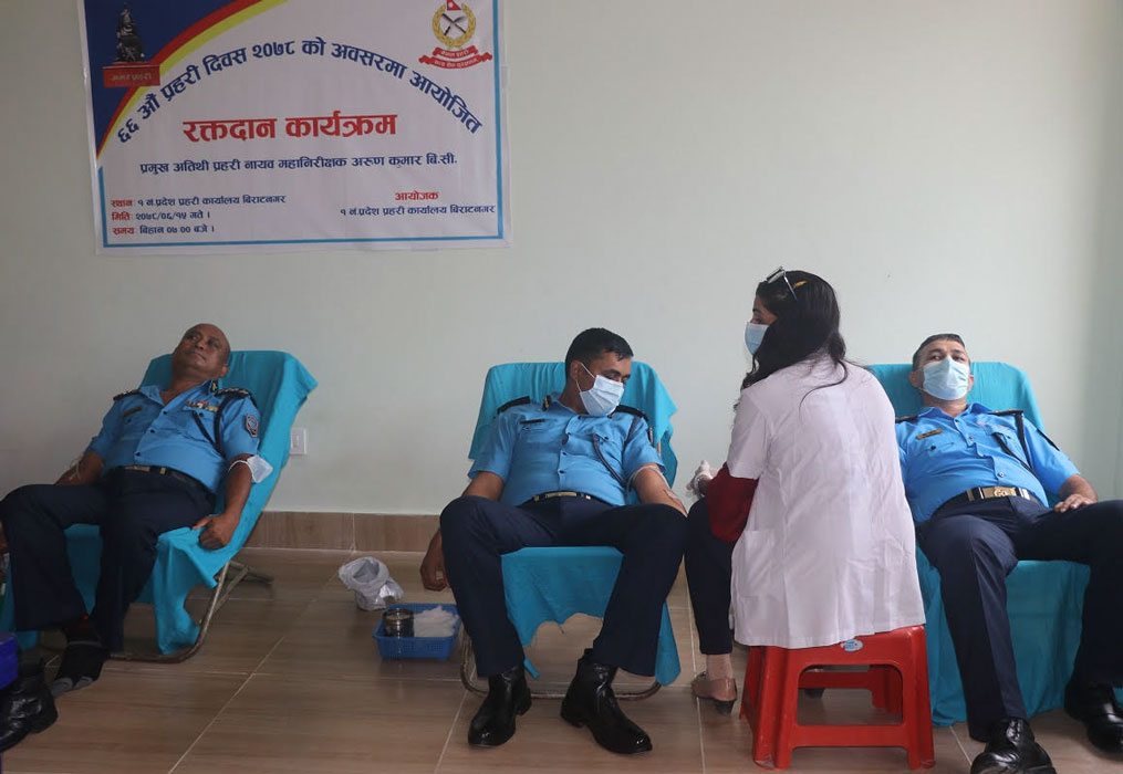 विराटनगर । ‘६६ औँ प्रहरी दिवस २०७८’ को अवसरमा आयोजित रक्तदान कार्यक्रम सम्पन्न भएको छ । नेपाल रेडक्रस सोसाइटी मोरङ जिल्ला शाखाको सहयोग तथा १ नम्बर प्रदेश प्रहरी कार्यालय विराटनगरको आयोजनामा प्रदेश प्रहरी प्रमुख अरुण […]