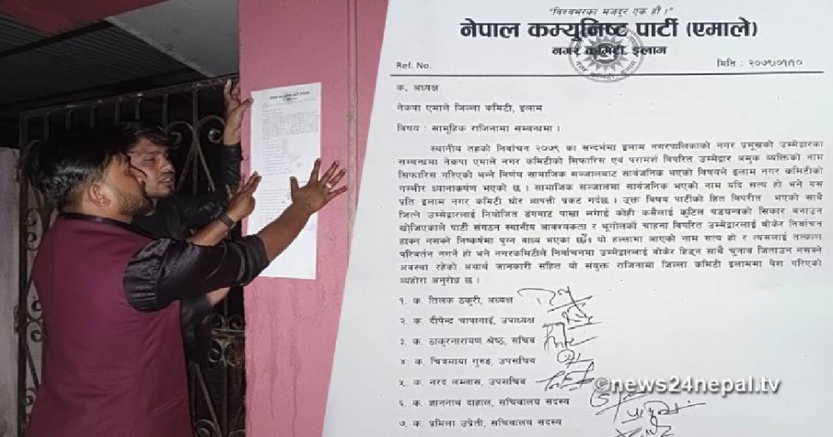इलाम – नेकपा (एमाले) इलाम नगर अध्यक्षसहित सम्पूर्ण नगर कमिटीले सामूहिक राजीनामा दिएका छन् । इलाम नगरपालिकाको नगर प्रमुखमा सिफारिस भएका ब्यक्तिको विषयमा छलफल नगरी नरेन्द्र नाथ भट्टराईलाई सिफारिस गरिएको भन्दै नेकपा (एमाले) नगर कमिटीका […]