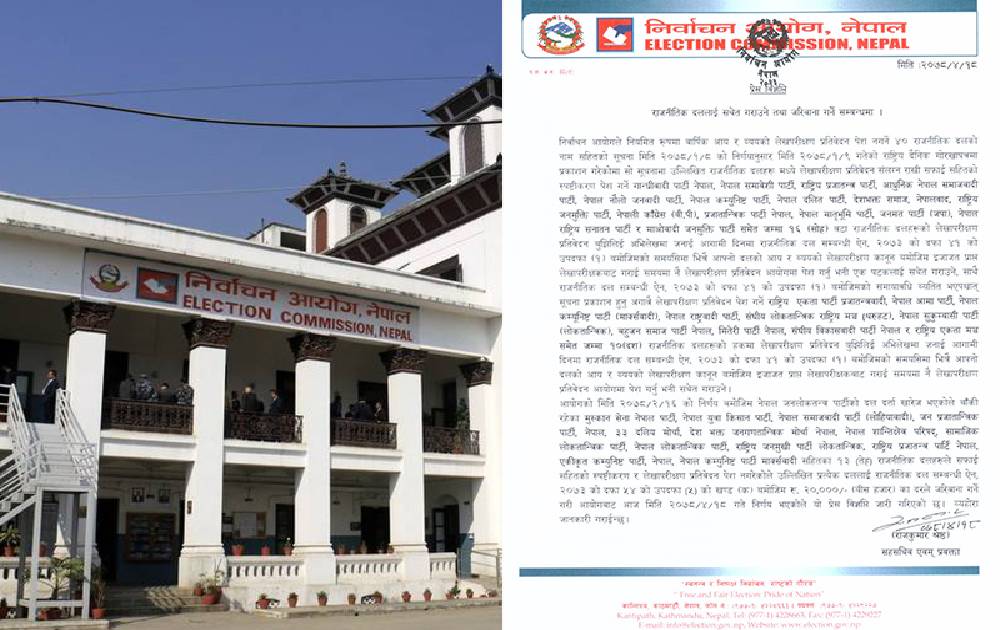 काठमाडौं – वार्षिक आय व्यय विवरण नबुझाउने र कानून पालना नगर्ने ४१ वटा राजनीतिक दलको निर्वाचन आयोगले दर्ता खारेज गरेको छ। आयोगले मंगलबार विज्ञप्ति जारी गर्दै चुरे भावर लगायतका ४१ वटा दलको दर्ता खारेज भएको […]