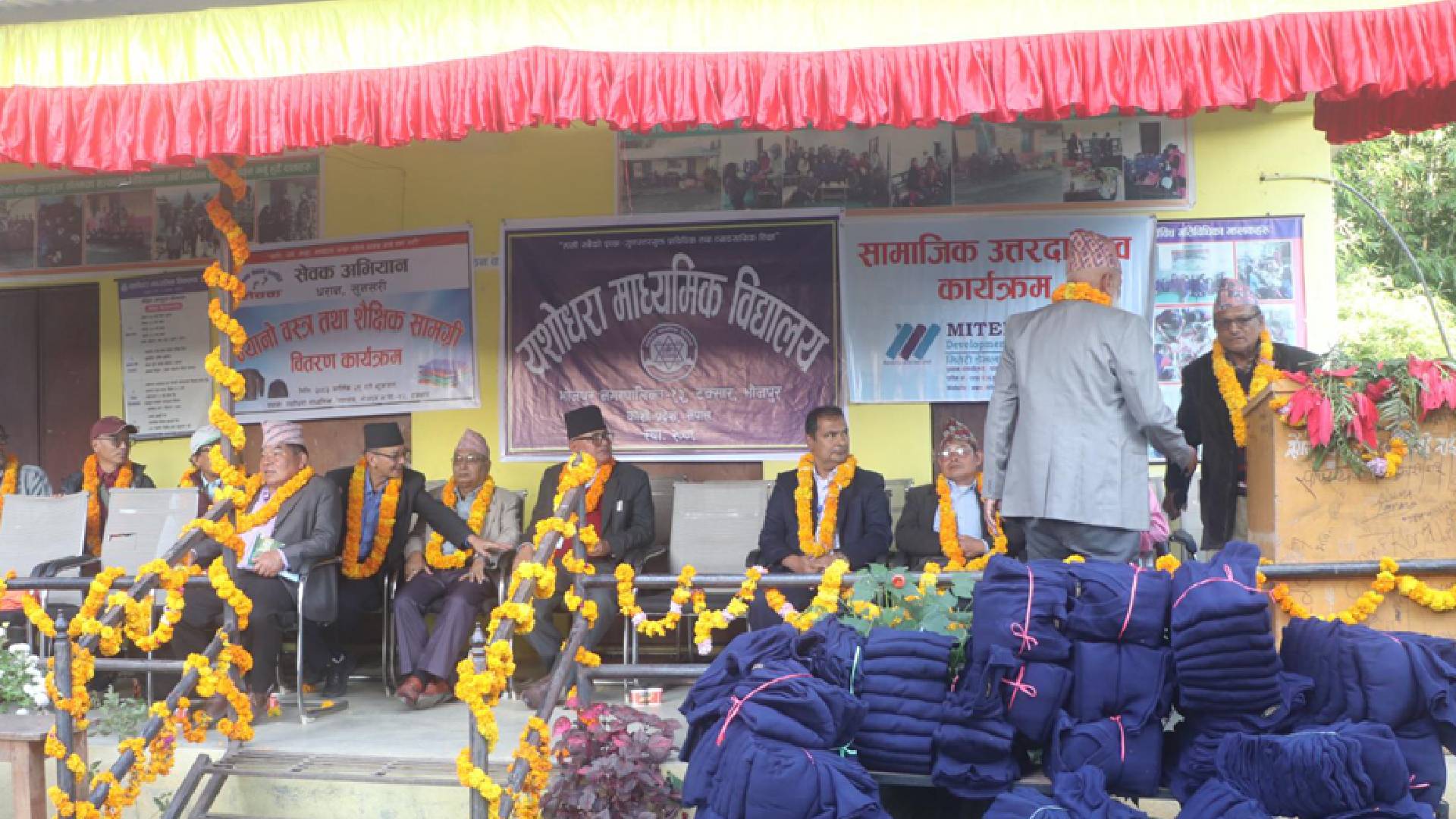 भोजपुर- भोजपुर नगरपालिका–१२ टक्सारस्थित यशोधरा माध्यमिक विद्यालयका पाँच सय विद्यार्थीलाई न्यानो कपडा र शैक्षिक सामग्री वितरण गरिएको छ । जाडो याम सुरु हुँदै गर्दा विद्यालयका विद्यार्थीलाई सहज अध्ययन वातावरण बनाउनका लागि ‘सेवक अभियान, धरान (सुनसरी)’ले […]
