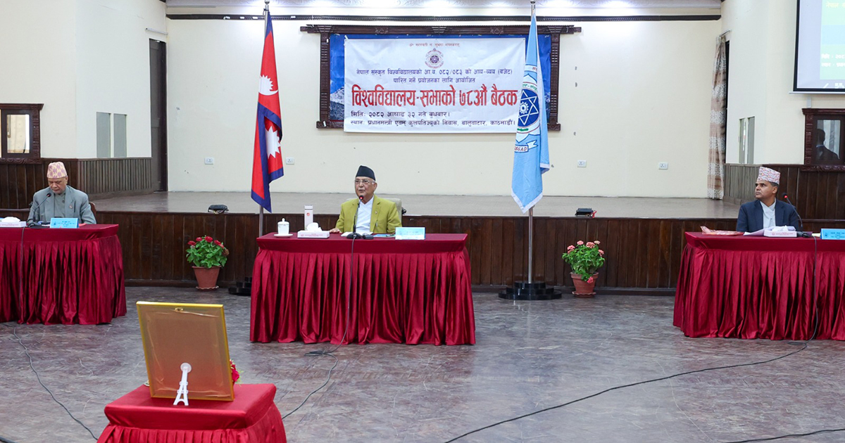 काठमाडौं। नेपाल संस्कृत विश्वविद्यालय सभाको ७८ औँ बैठकले आगामी आर्थिक वर्षका लागि रु एक अर्ब ३१ करोडको बजेट तथा कार्यक्रम स्वीकृत गरेको छ । प्रधानमन्त्री निवास, बालुुवाटारमा आज प्रधानमन्त्री एवं कुलपति केपी शर्मा ओलीका अध्यक्षतामा […]