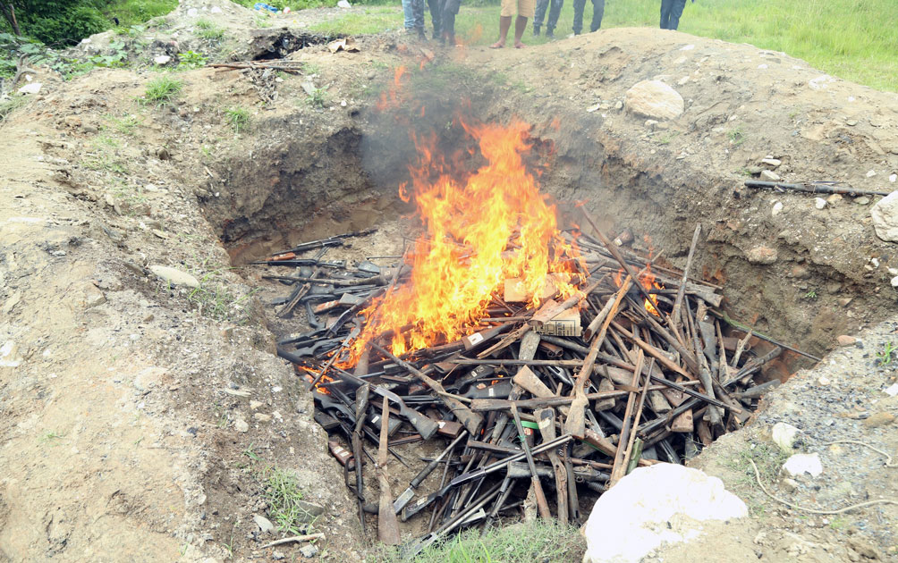 काठमाडौं । विभिन्न समयमा बरामद भएका ८ हजार ८ सय ९६ थान हातहतियार नष्ट गरिएको छ । कानून बमोजिम जफत भएका, प्राप्त हुन आएका, बरामद भएका वा वेवारिसे भरुवा बन्दुक ६,०७४ थान, बाह्र बोर १७७ […]