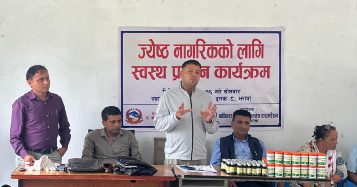 दमक । “स्वस्थ जीवनशैली, सशक्त जेष्ठ नागरिक” भन्ने नाराका साथ दमक–८ स्थित अर्ग्यानिक तरकारी बजार परिसरमा जेष्ठ नागरिक लक्षित आयुर्वेदमा आधारित स्वास्थ्य प्रवर्द्धन कार्यक्रम सम्पन्न भएको छ। आज सोमबार पाथिभरा हेल्थ एण्ड वेलनेस फाउन्डेसन दमकको […]