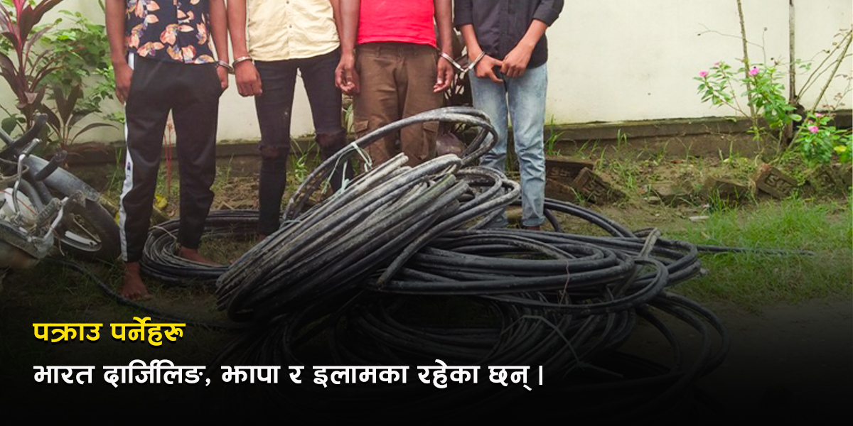 झापा । मेचीनगर नगरपालिका–५ नकलबन्दाबाट ठूलो परिमाणमा अप्टिकल फाइबर टेलिफोन तार भारततर्फ लैजाने प्रयास असफल भएको छ। प्रहरीले बुधबार पाँच बोरा तारसहित पाँचजनालाई नियन्त्रणमा लिएको छ। इलाका प्रहरी कार्यालय नकलबन्दाबाट खटिएको गस्ती टोलीले शंकास्पद गतिविधि […]